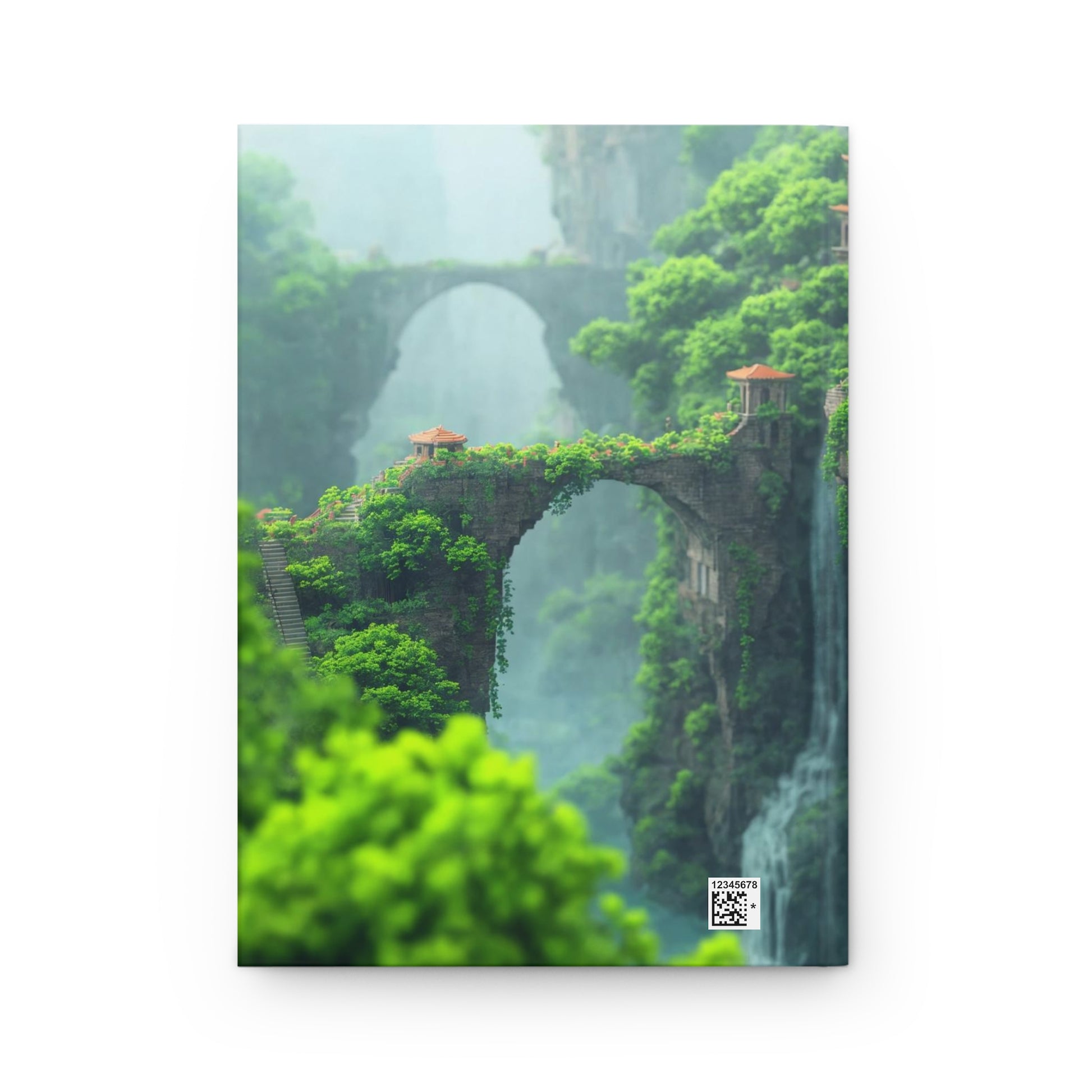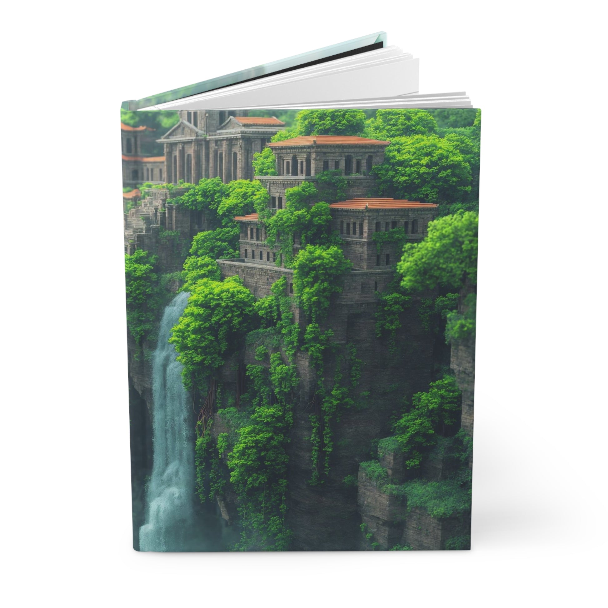 Ancient Cliffside Temple with Waterfall - Hardcover Journal
