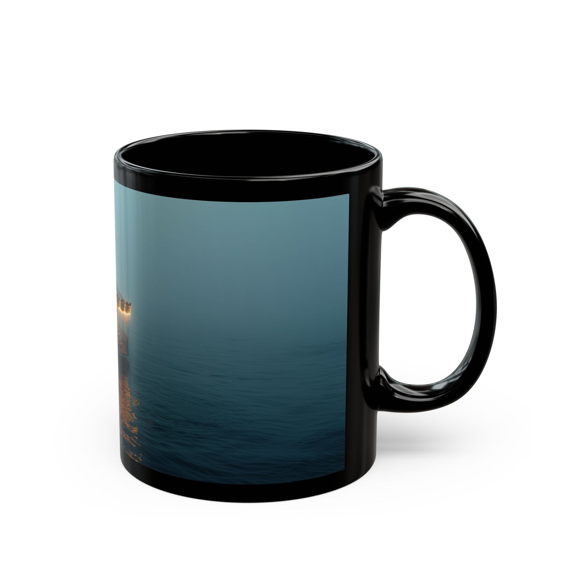 Sip your favorite brew beneath a floating carousel gliding through twilight mist, its ornate details mirrored in glassy waters. This AI-generated artwork captures a dreamy, surreal serenity — perfect for quiet moments of wonder. Let the magic linger with every sip.