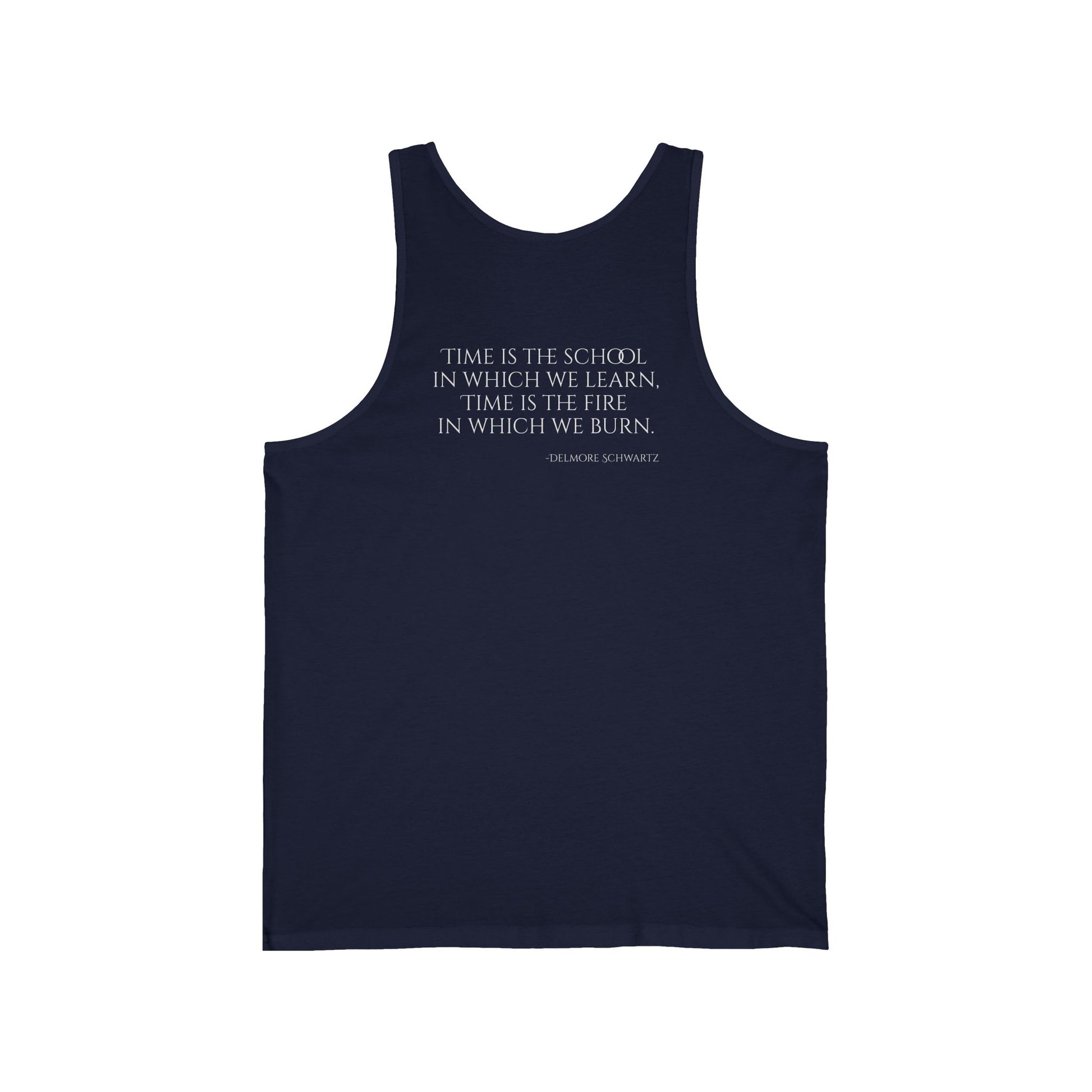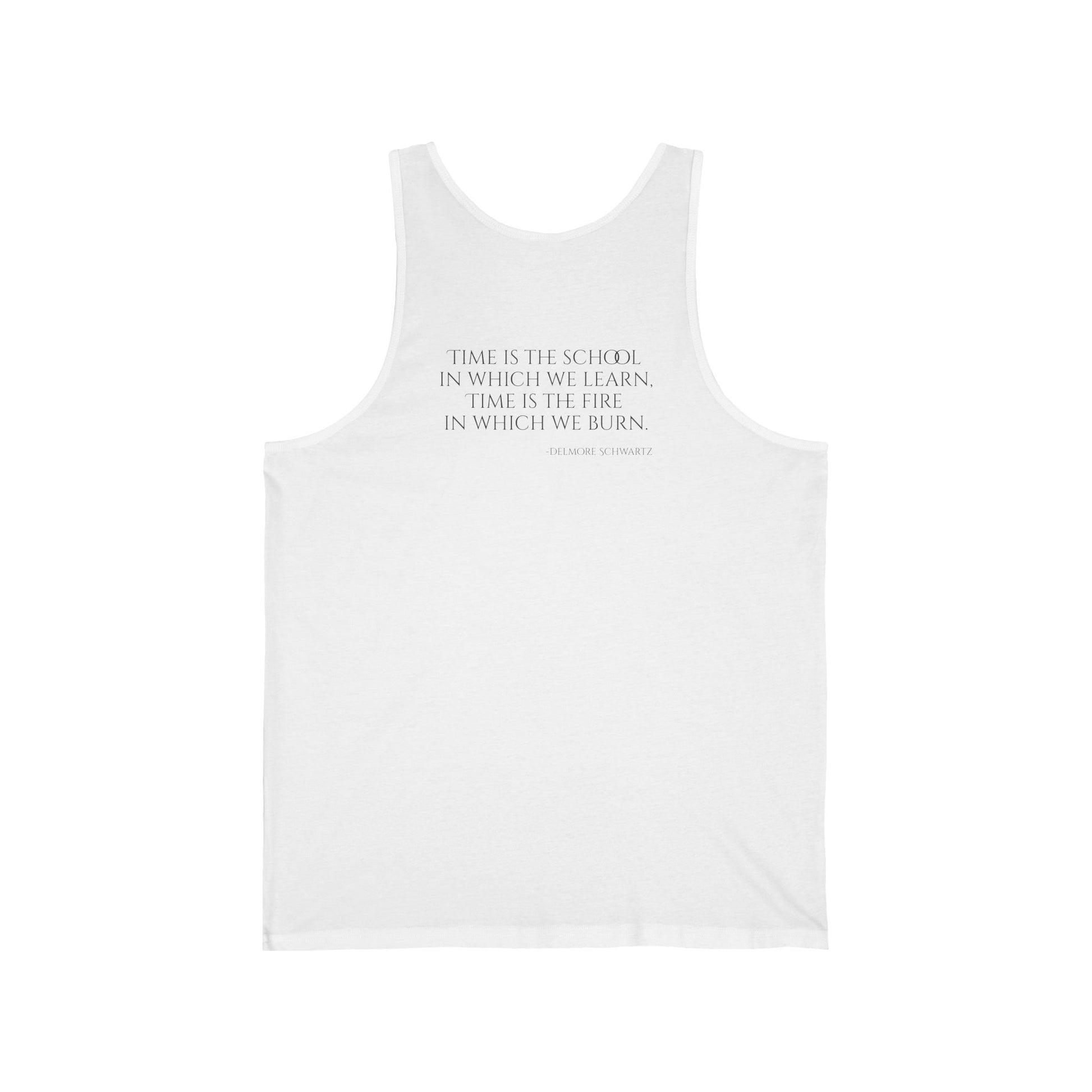 A minimalist white tank top features a small, stylized "Prometheatics" logo in earthy tones, with "Burning Man 2025" printed beneath. The clean lines and subtle branding evoke desert festival energy without overwhelming the wearer. Soft fabric and simple design let the art breathe—perfect for festival days or casual wear, where the quiet confidence of the logo speaks louder than words.