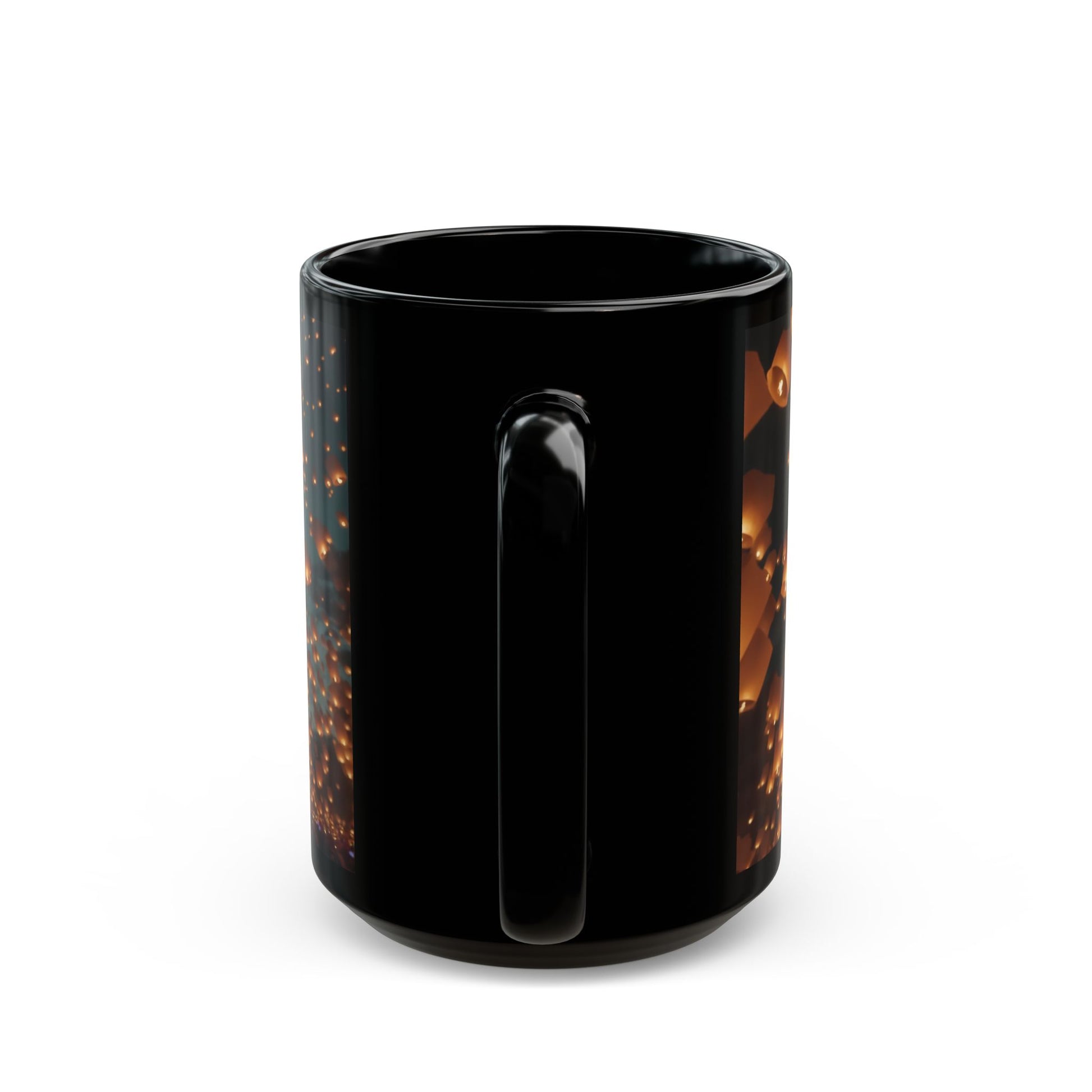 Skyborne Lanterns Black Mug – Warm Glow of Shared Wishes