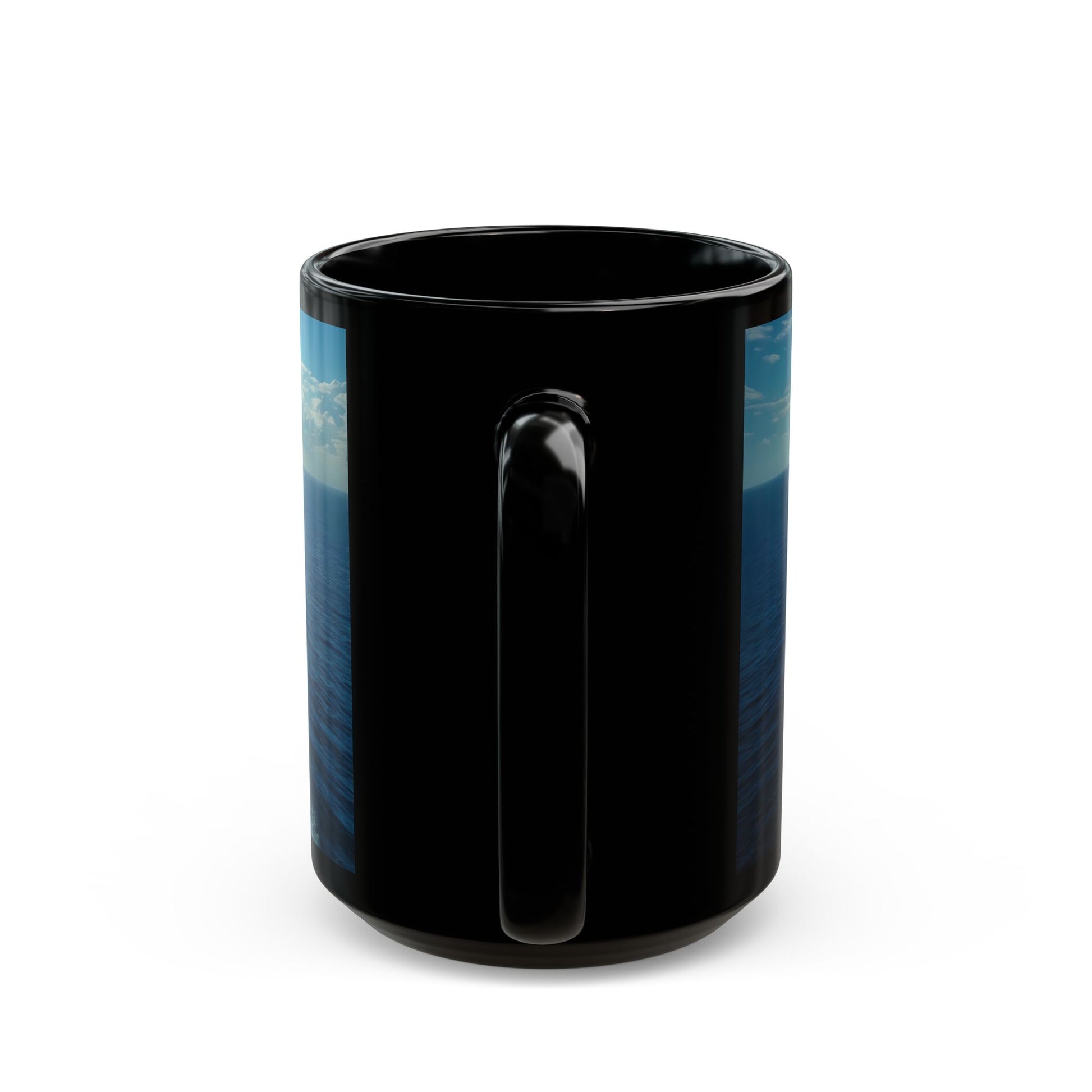 Sunlit Galleon Black Mug – Voyage Through Azure Horizons
